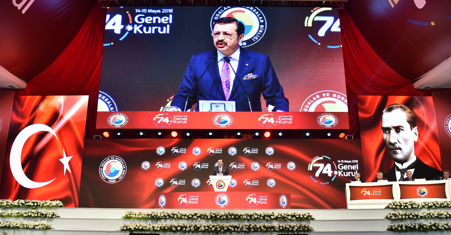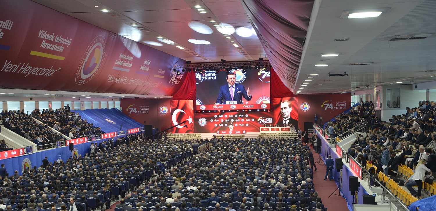 Türkiye Odalar Borsalar Birliği’nin (TOBB) 74. Genel Kurulu TOBB Ekonomi ve Teknoloji Üniversitesi’nde geniş bir katılımla gerçekleştirildi. TOBB Başkanı M. Rifat Hisarcıklıoğlu burada yaptığı konuşmada iş dünyası olarak kendilerine güvendiklerini belirterek, “Hedeflerimiz büyük. Türkiye sadece bölgesinin değil, dünyanın ekonomik devi olacak” dedi.​